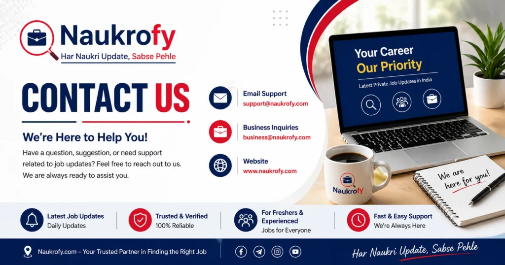 Welcome to Naukrofy, your trusted platform for latest private job updates in India. If you have any questions, suggestions, or need help related to job vacancies, company hiring, or career opportunities, feel free to contact us anytime. Our goal is to provide a smooth and reliable experience for every job seeker.